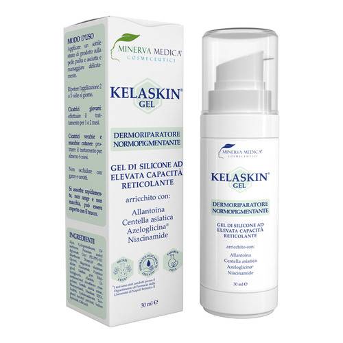 KELASKIN GELDescrizione Gel di silicone ad elevata capacità reticolante. Gel ad azione cicatrizzante, schiarente e lenitiva. Le azioni cicatrizzante e lenitiva sono ottenute in modo naturale, grazie all’azione dell’allantoina e della Centella asiatica. L’azione depigmentante si realizza con il rilascio combinato di Azeloglicina e niacinamide. L’aspetto innovativo di KELASKIN GEL è nel veicolo, costituito da una matrice siliconica reticolata che si lega allo strato fibroso della cicatrice, rilasciando gli attivi direttamente nello strato dermico sottostante in modo controllato e direzionato. Modalità d'uso Applicare uno str...